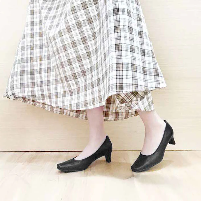 安定感のある太めのヒールと柔らかいソールなので足に負担が少ないのでお仕事履きにもおススメです。